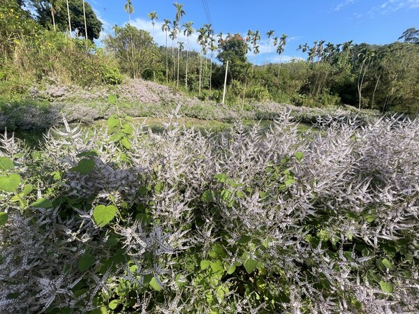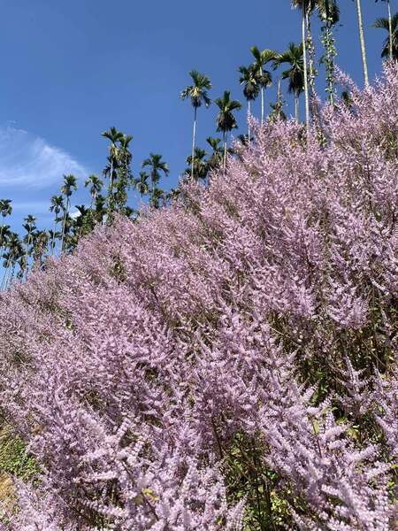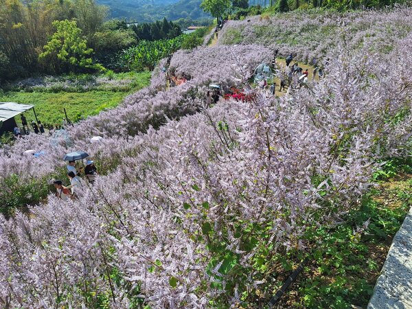 粉紅麝香木其實正確來說,它是淡淡的粉紫色,拍攝麝香木也很吃天氣。如果遇上陰天的話,麝香木看起來就會灰灰白白的,但只要有陽光,就會呈現柔美的淡紫色,而且陽光愈強,顏色看起來就會愈飽和,是不是很有趣。 ▼靠近麝香木花穗聞一聞,會有淡淡的香味,特別是和迷迭香的香氣很相似。 ![]() ![]() ![]() ![]() ![]() ![]() ![]() ![]() ![]() ![]() ![]() ![]() 粉紅山丘 全台話題度最高的麝香木景點來囉!一名蔡姓美髮師因熱愛麝香木,2年前購入100株麝香木苗在老家附近的山坡栽種,後來經網紅打卡賜名「粉紅山丘」後,成為許多賞花客初春必去的熱點之一。 ![]() ![]()