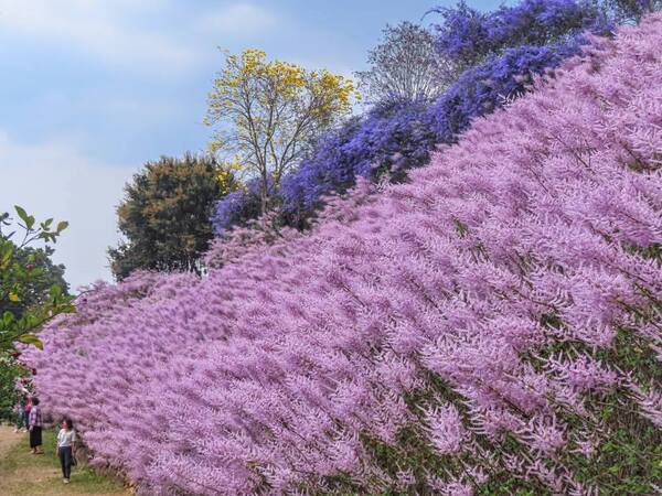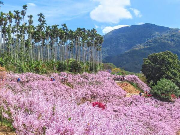 2025中寮花季正式展開,美麗的麝香木粉紅花毯已有八成綻放,園區內還有錫葉藤、九重葛、山櫻花和黃花風鈴木也幾乎都在這個時間段同時接力綻放著,接下來就跟著13一起開啟一段最夢幻的粉紅浪潮賞花之旅囉! 腳步循著園區內的小徑漫步,左右兩旁都是高過於頭且已經盛綻的粉紅麝香木,不遠處還有一棵山櫻,好夢幻的景色啊,才入園就讓人驚豔的想尖叫了。 ![]()
