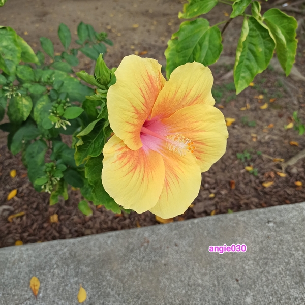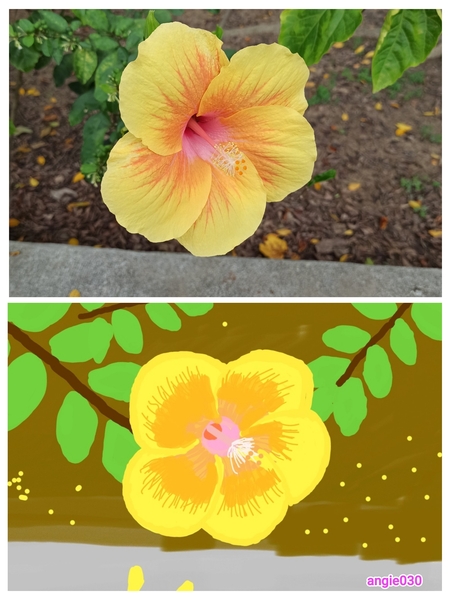 黃橙色朱槿取景角度不同,美麗盡在不言中
