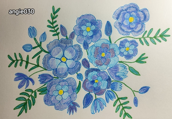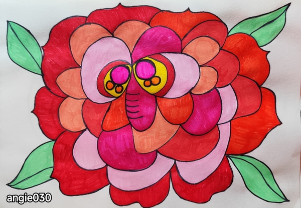 花朵盛開在心上,筆中揮灑似花匠, 線條勾勒無限創,繽紛色彩炫光亮, 靈感乍現舞畫章,風格簡化細思量, 奇異多變造形象,畫出自由與想像, 五張花圖愛那張,願你喜見熱情揚, 花開富貴添一章,美麗感染心蕩漾。