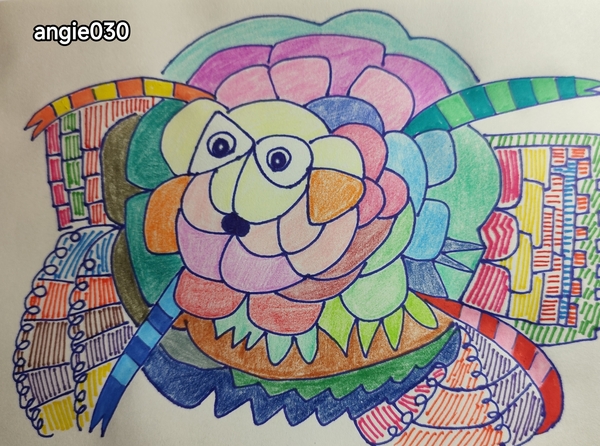幾何花朵奇特樣,看見何物猜謎藏,色彩繽紛突顯強。