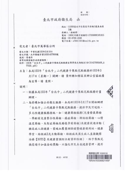 103年度臺北卡二代健康卡集點兌點服務開始