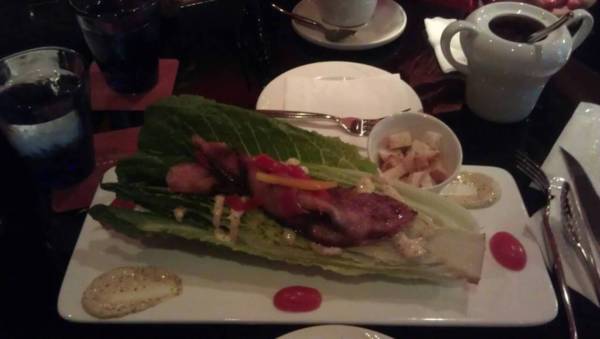 圖片說明: 某次跟表姐去某一餐廳裡的菜色。該餐廳燈光美氣氛佳是沒錯,來個生菜沙拉,當然擺盤也不錯,但是——生菜不能順便幫我們切一切嗎!!!來一顆生菜,真的有點讓人翻白眼啊。