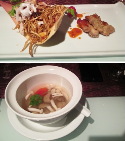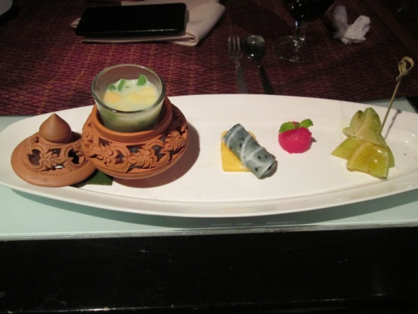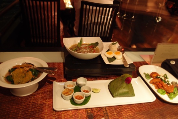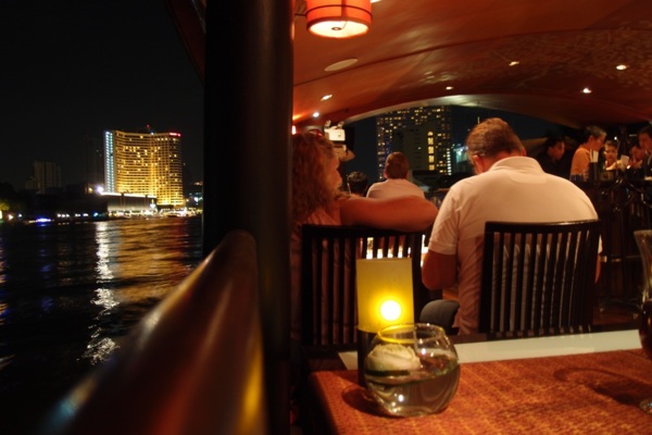 實際體驗Apsara Dining Cruise,確實是一分錢一分貨的高級船上晚餐。 我目測本船的座位應該不到10桌,服務人員幾乎是一人服務一桌的方式來照顧客人們。座位與座位間有適當距離,每桌皆沿著船邊,所以大家都看得到河景,都可隨心所欲的自行拍照。船開到知名景點附近,如:大皇宮,就會停下來,依序讓每桌的客人們至船頭就著身後的景點拍照。在船上播放的泰式音樂中,各桌依序由服務人員領著前往船頭拍照、再回座位,一切悠閒自在。 上桌的餐點,是泰式中混有西式的味道,擺盤漂亮。雖然口味不是很合我對泰式料理的想法,但總體還是不錯的——忠孝難兩全啦,啊我們就吃氣氛與服務,餐點還好,其實都是可以接受的範圍。