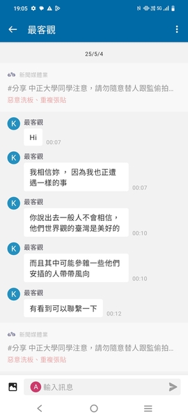 敝人是中正大學助理教授,自今年年初出來,我辦公室裡的工作站,以及筆電手機全部被入侵監控,辦公室疑似被安裝針孔,電話被竊聽。教職員宿舍裡也24小時被竊聽監視偷拍,Email以及所有的帳號與對外聯繫都被監控,所有生活中一言一行,一舉一動,以及食衣住行都被刻意曝光。出外也被跟監,去商店、超市買東西都被曝光在網路上,或植入手機社交軟體帳號裡,再加以羞辱霸凌以及人身攻擊,沒有任何隱私,刻意製造恐怖,踐踏人權與侵犯隱私權。 此外,對方疑似在背後散播不實謠言,中傷名譽,以此說服其他住戶同仁一起監控,並疑似將拍攝錄像設備放在宿舍四周的車上,甚至調度宿舍同仁的車輛。24小時竊聽偷拍跟監,侵犯隱私權,賤踏人權,非法及非人道虐待,一再恐嚇不得聲張,甚至放出死亡威脅,這種恐怖事件,竟會出現在大學教職員宿舍裡! 為了湮滅證據,對方還損毀我們兩個USB,植入病毒導致手機毀壞,而且讓電腦無法上網,以防止我們把照片和文件傳送出去。甚至連商家及學校的電腦都遭毒手,使後續使用者的磁碟中毒甚至毀壞。 2月17日曾至民雄分局北斗派出所報案,由於規定一案不能兩報,4月15日再回該派出所。之前的文件一~文件八皆為呈報中正大學學安組,以及警察局民雄分局北斗派出所的筆錄,五百多張照片與截圖皆已根據警方要求,以書面方式呈交給北斗派出所。 以下為根據所有文件編輯而成的【事件過程懶人包】,近期事件可參考【跟監日記】系列,該系列為4月30日至5月11日期間po在Dcard的文章。 https://drive.google.com/file/d/1JqV3oRRm87QkUtbP6tn1qJMZc-2Kc6On/view?usp=drive_link |