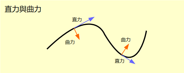 力的作用是改變物體的慣性。力是有方向的。施加到物體上的力依方向可以分拆成互相垂直的兩股。一股沿著物體慣性運動的方向,改變物體的速率。從物體運動的軌跡來看,力的方向是切線的方向。這股力我稱為直力。直力會改變物體的能量。推車子前進,一個檯球擊中另一個球,所施的力都只是直力。直力不會改變物體的空間方向,物體的空間軌跡是一條直線,但是物體的時空軌跡是彎曲的拋物線。 另一股力垂直於物體運動的方向,改變物體的運動方向。這股力我稱為曲力。直力不會改變運動的方向,曲力不會改變物體的速率,也就不會改變動能。當物體做圓周運動時,所施的力都只是曲力。物體作圓周運動的時空軌跡是螺旋形。圓周運動是一種旋轉,有另一套規律,後續會討論。 從牛頓第二運動定律看來,作用到物體上的力是動量對時間的變化率。這就是說,當力持續作用到物體會改變物體的動量。動量差=力×時間差。另一方面,當物體在力場中隨受力的方向從一個位置移動到另一個位置,能量可能會隨之改變。能量差=直力×位置差。直力是能量對空間路徑的變化率。這就將動量與能量透過力聯繫在一起。這個聯繫是從以力為核心的力學通向以能量為核心的力學的通道,是以能量為核心的物理理論的起始點。 |