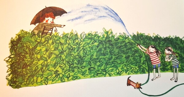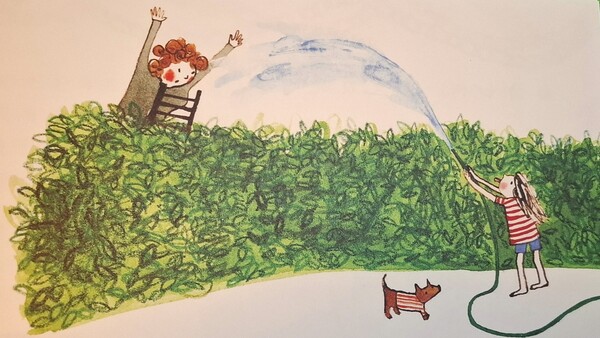 隔壁鄰居也很討厭夏夏,因為夏夏常常會惡作劇,故意拿著水管向鄰居噴水。