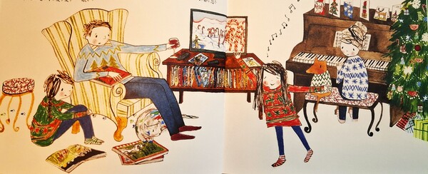 今天就是聖誕夜了,威士頓一家人和往年一樣,先看電影「聖誕精靈」,再由爸爸唸「平安夜」的詩,又讀了故事「鬼精靈如何偷走聖誕節」,小山和夏夏永遠也聽不膩。最後,媽媽彈鋼琴,帶全家一起唱「聖誕老人進城來」,就像往年一樣,當大家唱到「他知道你是頑皮鬼還是乖小孩」時,每個人都看了夏夏一眼。