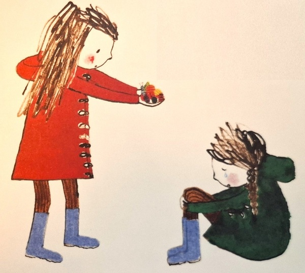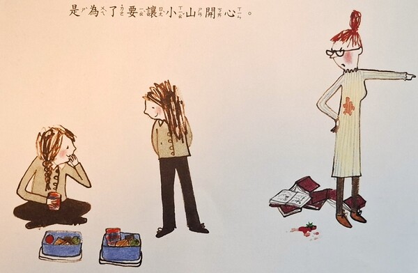 有時候她真的很不乖,在糖果店拿了好多糖果,那是因為有人捉弄小山,她當然不會容許這種事發生,她就會拿糖果來安慰小山。