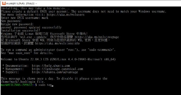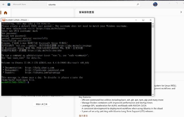 使用者帳號、密碼建立完成後,就可以進入到 Ubuntu 的指令。
