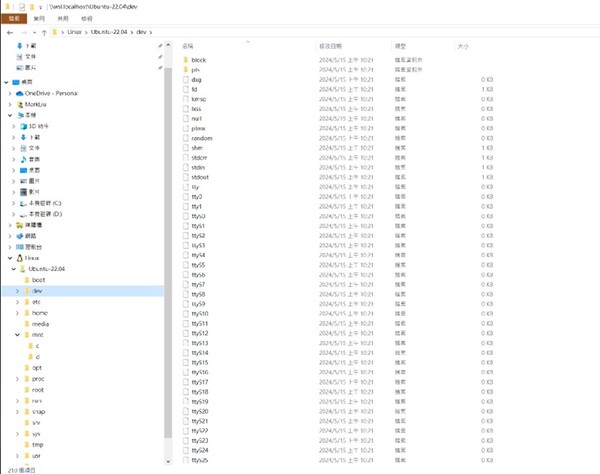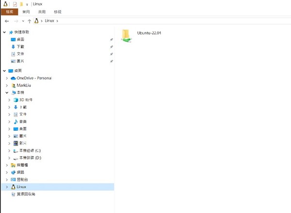 可以看到左邊的裝置會顯示出一個Linux資料夾,點選資料夾進去後,就可以用Windows 檔案總管,瀏覽 Ubuntu 的檔案結構了。