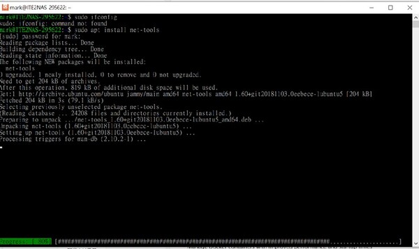 輸入指令:sudo apt install net-tools,開始進行安裝。