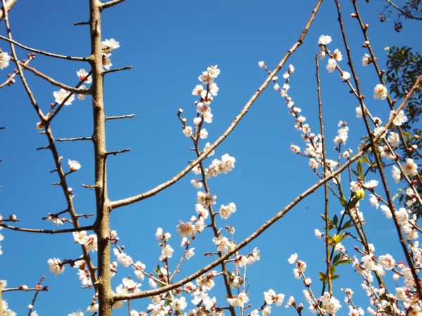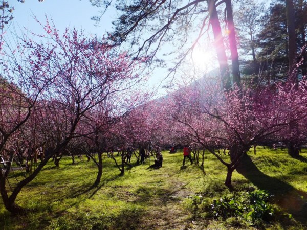 「槑花」=梅花同音 陽光灑在梅林間更襯托了大地的綠,真是一幅美麗的畫布。