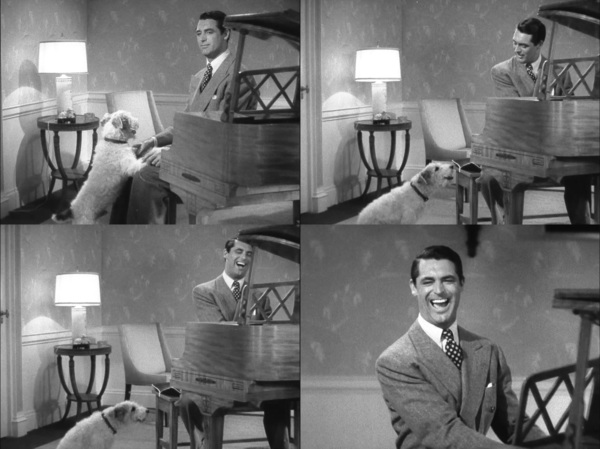 等我知有明星卡萊葛倫(Cary Grant,1904-1986),逢電視台播他電影必看時,都已只見他50多歲後作品,當然,年過半百猶在銀幕上吸引年輕貌美葛麗絲凱莉(Grace Kelly,1929-1982)、奧黛麗赫本(Audrey Hepburn,1929-1993),沒有一絲勉強,也是能耐。 記得台視有一次播二次世界大戰好萊塢影星宣傳記錄片,其中有幾秒Cary Grant促銷政府公債,面對鏡頭說了一句:”Buy it.”,氣質優雅,英俊非常,活脫「美人計」(Notorious,1946)Devlin現身,連我爸都驚奇:「嗯?這誰」。 而「驚人事蹟」(The Awful Truth,1937),當時華視播出,我頂多唸小學,不可能盯住電視看完,也跟不上這目不暇給喜劇節奏,哪會知道Cary Grant如此活潑年輕。 本片敘述紐約一對看來有點閒錢的年輕夫妻Jerry Warriner(Cary Grant)、Lucy(Irene Dunne),可能共同生活膩味,為一點小事感覺對方不誠實,也不問清楚,就訴請離婚,錢不是問題,爭的是小狗Mr. Smith監護權,結果法官准離,6個月後生效,小狗歸女方所有,男方得隔週探視。 夫妻倆明明彼此喜歡,就是不挑明,於是專門破壞對方新戀情,最後女方眼看離婚生效日屆至,借酒裝瘋略施小技,讓夫妻共處一室,始重修舊好。 故事其實無聊可以,但劇情推演緊湊有趣,小小一齣喜劇,榮獲奧斯卡最佳導演獎(Leo McCarey),同時提名最佳影片、女主角、男配角(Ralph Bellamy)、劇本、剪輯。 Cary Grant照樣不會被提名,但可想見若沒有他看似古靈精怪,其實憨直略帶小憂鬱,男主角豈能三不五時搞破壞,還這麼討人喜歡?導演縱有妙筆,輔以非常聰明搶鏡貓狗,若無Cary,究否生花?Irene Dunne唱跳全能表演,若非Cary,尚否有人精準接應? Ralph Bellamy(1904-1991)提名最佳男配角,但看來沒甚麼突出可言,反而埃及演員Alexander D'Arcy擔任女主角聲樂老師,不知是不是裝傻,每次出場都引發Cary Grant非常搞笑橋段,其中最有趣就是Cary從發現禮帽莫名變大,到與Alexander共處一室,最後追打出門外,音效及演技都非常幽默逗人,完全不覺陳腔濫調。 女主角Irene Dunne(1898-1990),知其名甚少真去看她作品,原來演喜劇這麼輕鬆自如,與Cary Grant甚有默契,且歌聲舞技不俗,雖然面貌說不上艷麗。附帶一提,Irene全盛時期”Magnificent Obsession”(1935)、”Show Boat”(1936)、”Love Affair”(1939),後來重拍成「地老天荒不了情」(1954)、「畫舫璇宮」(1951)、「金玉盟」(An Affair to Remember,1957)。