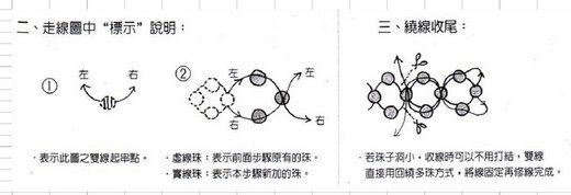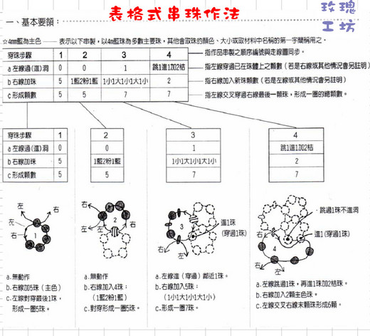 | 一般表格式串珠作法*不管怎麼變化,凡在左手的線為左線,右手的線為右線* |