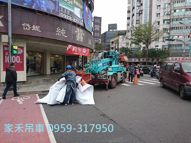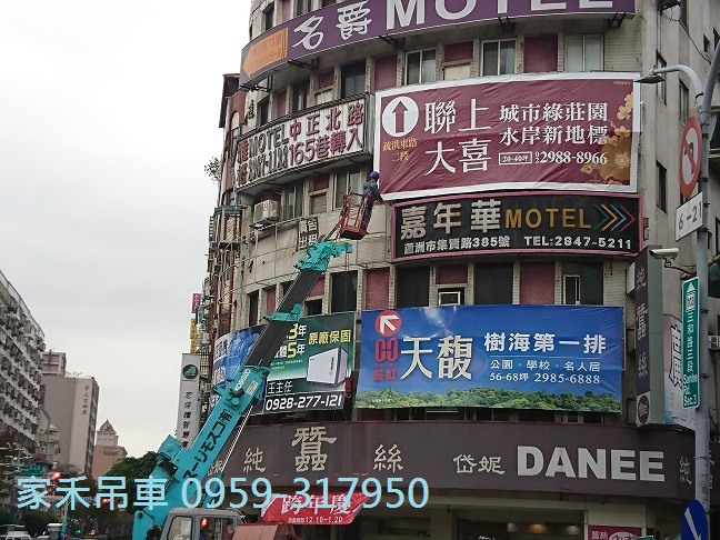 小螃蟹吊車,三重三和路上,配合廣告帆布施工安裝。。