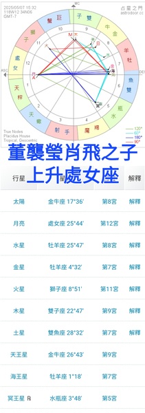 肖飛和董襲瑩的處分出來了,肖飛開除黨籍+吊銷醫師執照,董襲瑩醫學博士學位+醫師資格撤銷。 董襲瑩家有錢,不工作無所謂。通告提到董襲瑩的生日是1996年6月生,這個在吵得火熱的時候,網路都查不到,2025年5月15日才知道。 董襲瑩可能雙子或是巨蟹座,可惜了,木星2025年6月從雙子換到巨蟹座,董襲瑩不管哪個星座,都是吉星高照,我記得占星師有講過,即使木星過境,不能認為吃了保命符,人膨脹,招致麻煩。 網路還有流傳董襲瑩在洛杉磯生子的消息,可能她待在華人圈的醫院和月子中心吧!有些看不慣董襲瑩的,就爆料了。 然後我就查詢董襲瑩和肖飛之子的星盤,出生地.時差.夏季時間都要輸入清楚,否則出來的結果,保證不一樣。 ,