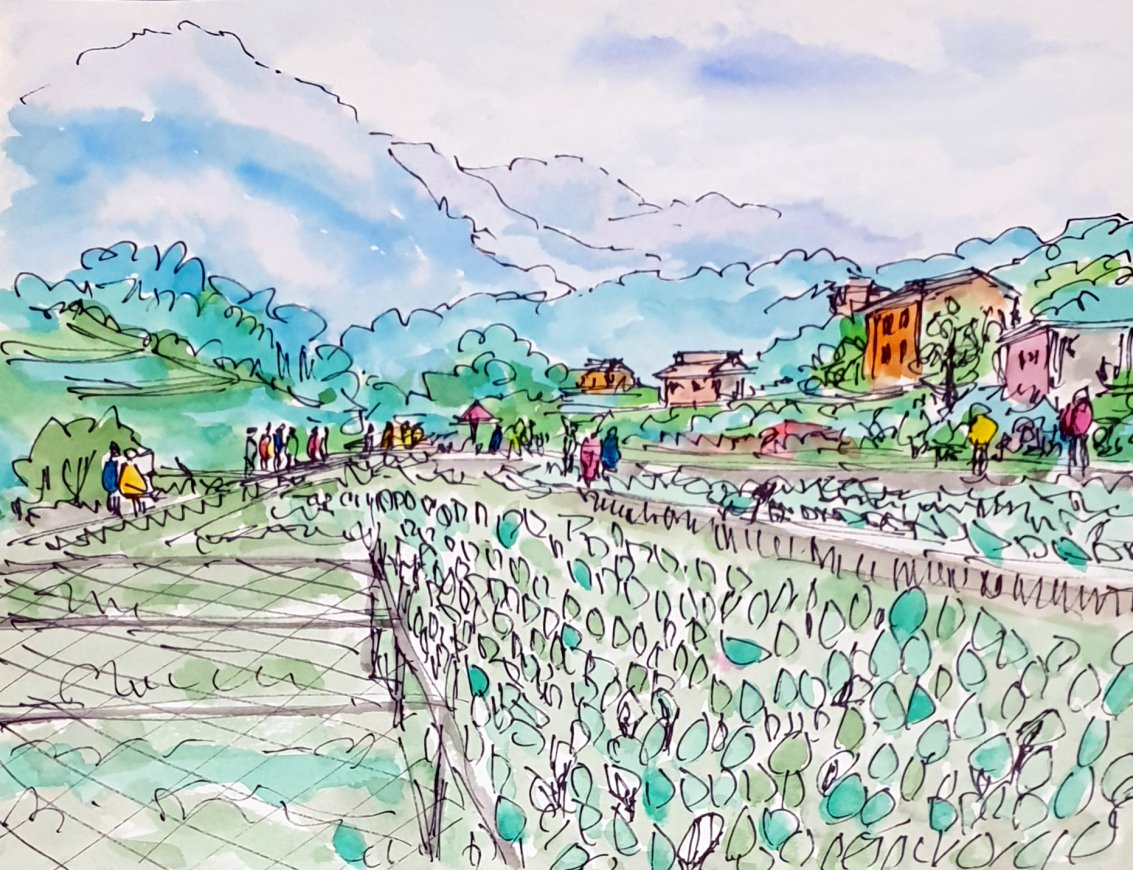 光看這滿山的海芋花就叫人滿心歡喜,那是一個快樂,只是要注意田梗上的土很滑,稍不留神就會滑一跤。