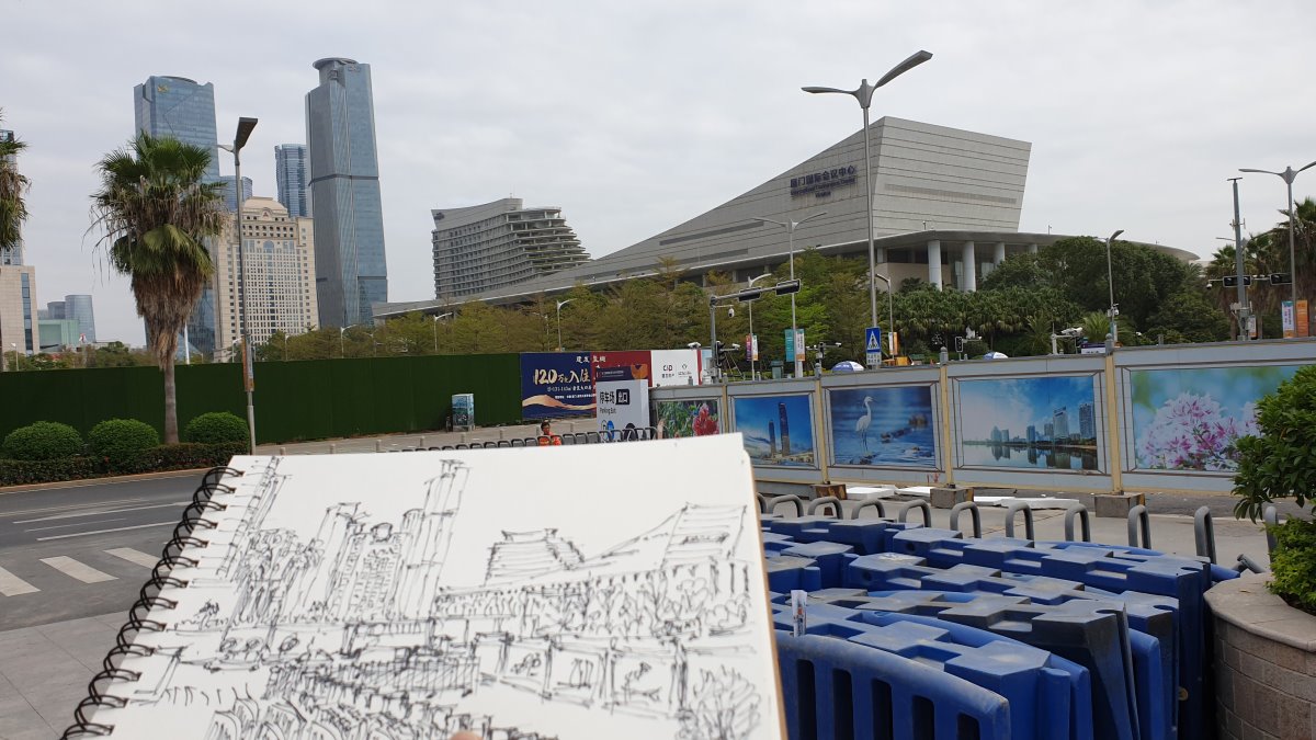 這是展覽館的另外一側,仰望可以看到許多高樓,這也是廈門最新的一個區域,有許多辦公大樓晚上亮起輝煌的燈光。