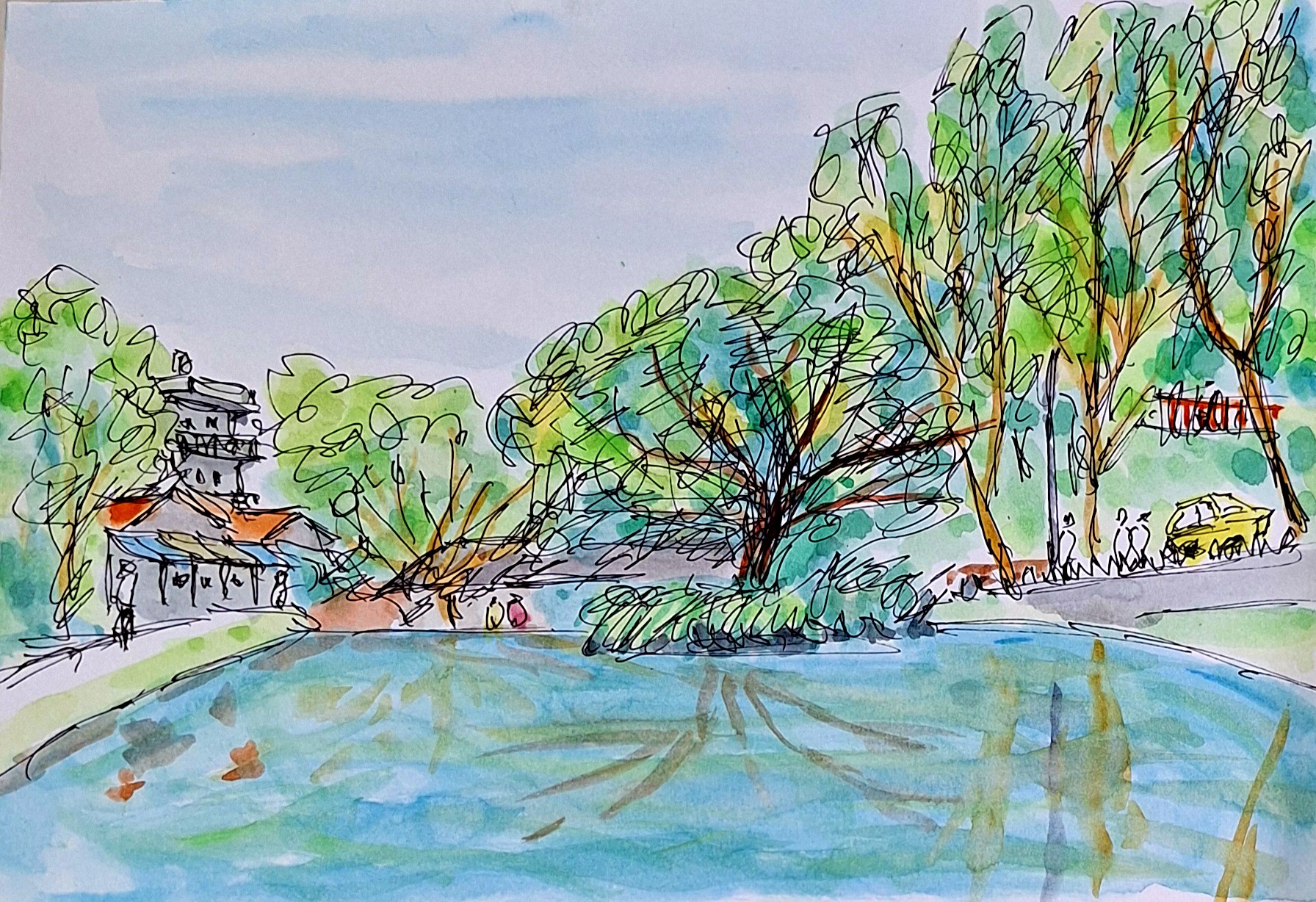 清晨的陽明山前山公園,雲霧還停在樹梢,像輕柔的羽絮。走上石階小徑,兩旁是微濕的草地和竹林,空氣帶著泥土與淡淡花香,涼意中透著青草的清甜。 園區中央那片大草地,幾隻喜鵲與白頭翁在追逐覓食,草上留著昨夜露水,踩下去會濺起細小的水珠,讓鞋面印上清晰的水痕。一旁,有位長者帶著兩隻毛小孩慢跑,狗狗在草地翻滾,舌頭垂著,開心地奔來奔去。 再往裡走,有片老樹聚集的小林蔭區,一位畫家支著小折椅,正專心速寫前方的枝影與山形。他用鉛筆簡單勾勒出樹幹的彎曲與細枝的錯落,隨風擺動的葉子在紙上只是一道道斜線,卻能感受到風聲的流動感。 涼亭裡幾位爺奶正下著象棋,旁邊幾個登山客卸下背包,喝著保溫瓶裡的熱茶,討論著下一段要走的路線。遠處能見到淡淡的台北盆地景色,被霧霭半遮住,彷彿水墨山色隱隱浮現。 前山公園並不華麗,但清晨的空氣和山林寧靜讓人放慢呼吸,也放慢心裡的節奏。這裡是許多台北人週末輕爬山的開始,也是日常喘息的森林出口,每一次抬頭望向山巒的曲線,都像提醒著:生活不是一條直線,而是隨著山勢起伏、呼吸也跟著深淺不一,活在當下,就是最好的風景。 |