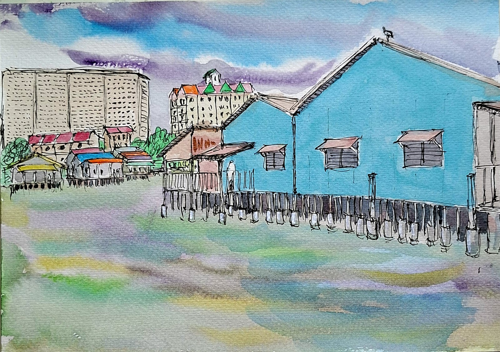 馬來西亞喬治敦的李姓橋(Chew Jetty)海上屋,是一條長長的木棧道延伸進海面,兩側排列著古老的木造房屋。這些海上屋架在高腳樁上,潮汐間,海水輕拍著木柱,發出規律的聲響,像是給居民的日常伴奏。 清晨時分,海風帶著鹹味與淡淡的魚腥,穿過縫隙灌進屋裡,吹動曬在門前的衣物。老人坐在門檻邊喝茶,年輕人推著機車準備外出,孩子在木板道上追逐,笑聲與海浪聲交織成溫暖的生活旋律。 木板偶爾吱呀作響,似在訴說百年來的滄桑與故事。遊客踏上這條橋,便像走進一幅漂浮於海上的人間畫卷,既有歲月的痕跡,也有生活的溫度。 |