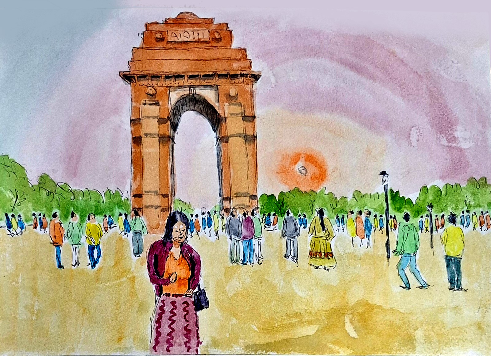 午後的陽光像一層金紗,覆在新德里寬闊的林蔭大道上。遠遠望去,印度之門矗立在天際線之間,如一座通往歷史深處的拱門,莊嚴而沉默。車流在四周繞行,喇叭聲此起彼落,將它包圍成一座被現代節奏擁擠的孤島。 草地上坐滿了人,有一家人野餐,有年輕情侶低聲交談,也有幾名士兵在一旁靜靜巡視。孩子們追逐鴿子,笑聲在空氣中飛揚,偶爾回音落在石碑上,像輕輕的叩問——那些刻在門上的名字,是否也曾有過這樣無憂的午後? 我走近紀念碑的基座,粗糙的石面被歲月磨出一種溫潤的質感。烈士的姓名一行行排列,無聲卻有力,彷彿站在這裡,眼前的每一道風都穿越過戰火與失去。周圍的人或許未必細讀,但他們的影子,仍然在這片土地上流動,延續一種看不見的記憶。 黃昏漸近,天空染上淡紫與橘紅,印度之門的輪廓在光影中顯得更加清晰。我站在遠處回望,它不再只是石造的拱門,而是一個時間的標記,提醒著人們,在喧囂之外,總有某些沉重而值得凝視的過去。 |