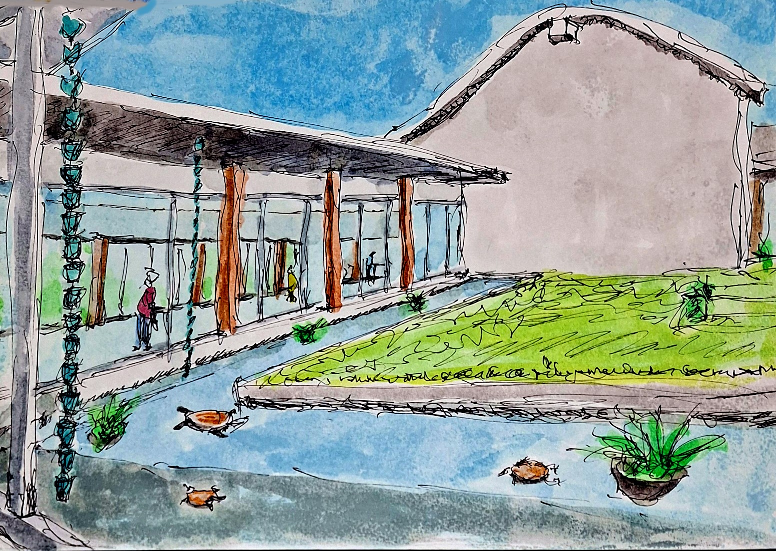 午後的光,帶著台東特有的慵懶與溫度,靜靜灑落在台東美術館的白色建築上。這裡沒有都市美術館的壓迫感,反而像一座與自然共呼吸的藝術庭院,讓人一踏入便不自覺放慢腳步。 我在園區的草地邊坐下,速寫本攤開,筆尖輕觸紙面。眼前的線條並不銳利,建築輪廓被午後的光柔化,像一幅尚未乾透的水彩。幾件戶外雕塑散落其間,有的抽象、有的近乎童趣,在綠意之中顯得格外自由。偶爾有微風吹過,樹葉沙沙作響,彷彿替畫面添上看不見的動態筆觸。 遠處傳來孩童的笑聲,幾個人隨意地在草地上走動,藝術在這裡不是高高在上的存在,而是一種日常的延伸。有人坐在樹蔭下閱讀,有人靜靜凝視作品,每個人都用自己的方式與空間對話。 我畫著畫著,忽然發現自己不再只是記錄眼前的景物,而是在捕捉一種節奏——台東的慢、風的輕、還有時間在這裡被拉長的感覺。速寫本上的線條或許不完美,但那種當下的安靜與自在,卻悄悄被保留下來。 離開前,我回頭看了一眼這片空間。陽光已微微傾斜,影子拉長,整個美術館像在呼吸。也許真正的藝術,不只是牆上的作品,而是這片讓人願意停下來、重新感受生活的地方。 |