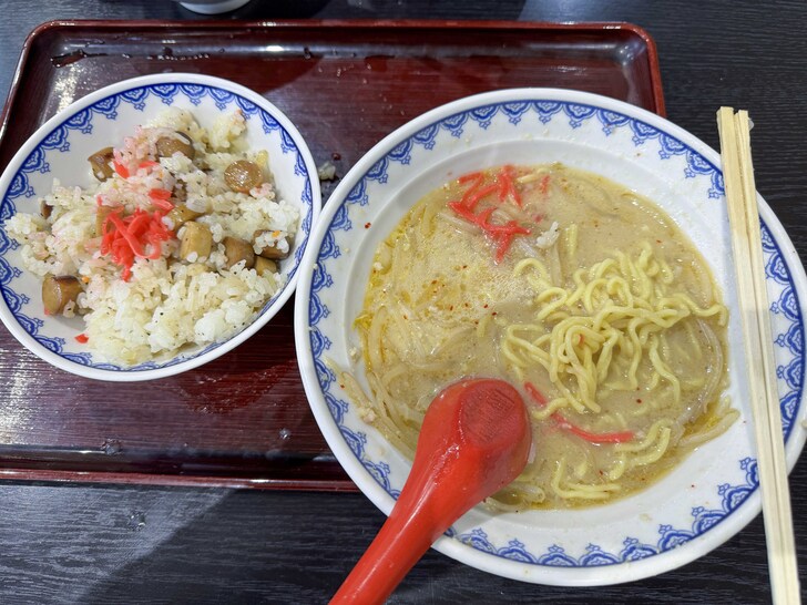 入住後放下行李馬上找吃的(飯店沒有提供晚餐),找到一家拉麵店(食堂ニューミサ)車程只要5分鐘但是17:00就打烊,到了拉麵店因為快打烊了很多東西都賣完了,我們點了蔬菜拉麵和炒飯(還不錯吃),飯後前往飯店附近松ヶ峯拍攝點看看是否有色溫可以撿,拍攝完後回飯店發現停車場只有我一台車水某說會不會包場,晚上本想在房間洗澡就好水某說沒有其他人入住大浴場應該也沒人,結果不出所料大浴場依舊是包場,今天天氣晴朗要不是飯店無法取消有點想去中子の櫻拍銀河,明天要回新潟市早早休息。