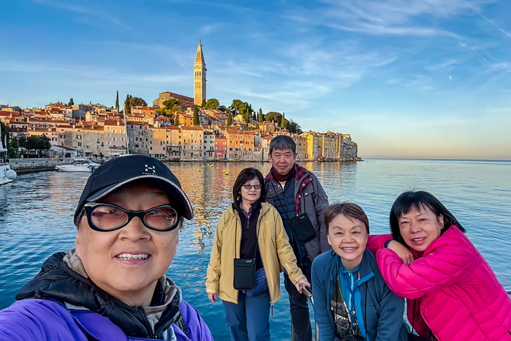 一早06:15出發前往拍攝羅維尼晨曦,停好車相機架好等待天亮,天空漸漸亮起,這時水某發現右邊天空是粉紅色的,旁邊還有一艘大帆船可以搭配,於是大家紛紛挪動位置拍攝,整個海天一色的粉色系,真的好美啊! 不知道是因為緯度和太陽折射的角度關係,這裡的日出清晨的天空是粉藍粉紅的,真的是我第一次遇到,還好大家第二天仍然願意早早起床一早來拍攝,真是老天爺給的最好的安排。 早餐原本安排附近漢堡速食外帶,沒想到這家店中午才開始販賣,還好旁邊有一家超市可以順便補貨,也買了麵包當早餐(真不是普通難吃的麵包呀),超市旁有在另一家鮮魚海產店,阿香選了兩條鮮魚,但店家是不幫忙殺魚的,其他人選了冷凍的蝦仁和小卷後,就開車回民宿了。