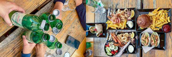 早餐後前往普拉競技場(40分鐘車程),到了目的地一時找不到停車場,繞了一大圈後重新導航終於順利抵達,停好車買票進入競技場,天氣晴朗參觀的人不算多,競技場是古羅馬時代的建築保存得很完整,陽光透過競技場的環狀拱廊與簍空的拱門,形成錯落不一的光影,可以拍建築的宏偉、也可以拍遊客穿梭於光影之間的瞬間,走走拍拍不自覺已近中午時間,之後我們走到普拉古城的街道上邊走邊拍一些寫實的照片,中午就在街邊找了一家速食餐廳,有人點漢堡,有人點墨西哥Taco跟捲餅,阿香跟我點了有滿滿薯條的海鮮拼盤,真是各國料理大集合啊,都滿好吃的,算是CP值滿高的一餐。