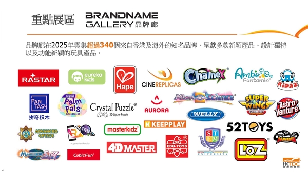 實體展日期:2026年1月11-14日(星期一 至 星期四) 香港貿發局香港玩具展是亞洲同類型展覽中規模最大,也是全球第二大的玩具貿易展覽, 2025展後數據如下: 2025年第51屆香港玩具展、第16屆香港嬰兒用品展、第23屆香港國際文具及學習用品展,一連四天的實體展覽共吸引來自119個 國家及地區、約80,000名買家親臨會場採購,並有來自34個國家和地區、2500家展商 展會焦點集中於多個產品區,包括享負盛名的品牌廊、智能玩具及大童世界。其他主題展區更是包羅萬有,如益智玩具及遊戲、電子及遙控玩具、節日及派對用品、煙花、綜合玩具、紙品及玩具包裝、軟身玩具及洋娃娃、測檢及認證服務、商貿服務、玩具汽車及戶外及運動用品世界, 滿足不同買家的需要。 「品牌廊 」 :匯聚約250個知名品牌,包括4M、B. Duck、怡高等,為買家帶來設計出色及優質安全的玩具。 「智能玩具」:將科學、科技、機械人、工程、藝術及數學(STREAM)融入玩具和遊戲,是業界的主要趨勢。 「大童世界」:展示包括啫好玩具、魔術用具、模型及人偶、野戰遊戲等迎合成年人喜好的玩具。