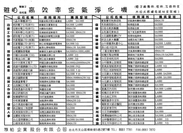 1997年先由我提供所代理美國雅柏空氣淨化機產品組七人行銷團隊.