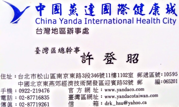 2008/09參與中國北平燕達健康醫療園區籌備期台灣區聯絡處工作曾至中國北平參觀燕達健康醫療園區施工及聽取相關簡報,