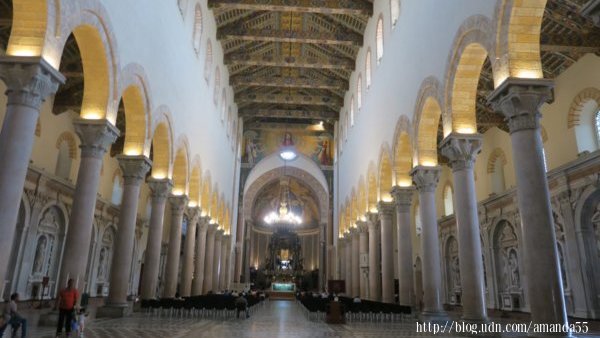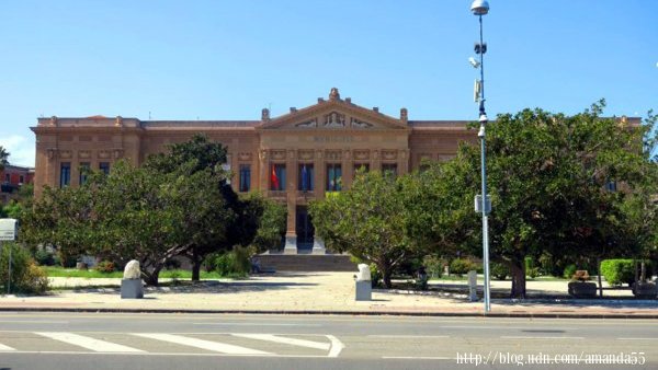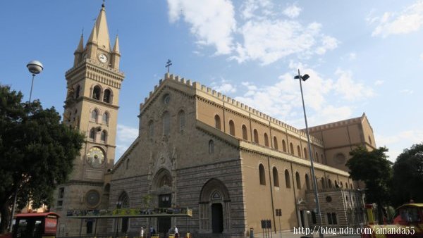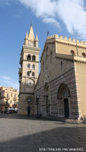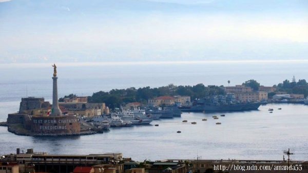 墨西拿(Messina)與義大利半島的維拉聖焦萬尼(Villa San Giovanni)僅一水之隔 從雷焦卡拉布里亞 (Reggio Calabria)遠眺墨西拿 義大利西西里島-墨西拿(Messina)的港口 義大利西西里島-墨西拿(Messina)的港灣 義大利西西里島-墨西拿(Messina)的港灣 義大利西西里島-墨西拿(Messina)的濱海步道 義大利西西里島-墨西拿(Messina)的Church of King (Cristo Rey) 市政廳(Town Hall Messina Sicily) (2017/9/17)早上沿著墨西拿(Messina)海港的步道走一圈,大約是4公里,沿途的海岸都被牆隔離,十分的無趣,回程我改走古城的街道,一路走來有教堂、廣場、宮殿、紀念碑、博物館…..等等古建築物,襯托出一股雍容華貴之氣質。 海王星噴泉(The fountain of Neptune, Messina, Sicily) 墨西拿(Messina)的大教堂廣場 墨西拿(Messina)的劇院 Annunziata dei Catalani Church 墨西拿大教堂(Duomo di Messina)有華麗的哥德式風格的立面,中央的銅門與門框佈滿細緻的雕刻,裡面的中殿由兩排柱廊延伸至祭壇前,教堂牆面的雕刻與天花板的彩繪相互呼應,整座教堂散發濃厚的藝術氣息。矗立於教堂左側的鐘塔牆面鑲嵌著巨大機械鐘和天文鐘。傳說獵戶座 (Orion)建立墨西拿,所以教堂廣場設立獵戶座的紀念噴泉(Mounmental fountain of Orion)。 墨西拿大教堂(Duomo di Messina) 獵戶座的紀念噴泉(Mounmental fountain of Orion) 大教堂中央的銅門與門框佈滿細緻的雕刻 大教堂中央的銅門與門框浮雕 無意中發現攀登山頂的石階,走到盡頭是一座廣場,蒙塔爾聖母聖所(Sanctuary of Our Lady of Montalto)座落於廣場上,這裡視野遼闊,是墨西拿最佳的賞景點,由近到遠所有的景觀一覽無遺,遠眺中矗立港口的紀念塔成為聚焦點,底部的圓形磚塔興建於1546年,35公尺高的紀念柱矗立於磚塔之上,墨西拿的守護神馬多尼納 (Madonnina)立於紀念柱之頂端。 蒙塔爾聖母聖所(Sanctuary of Our Lady of Montalto) 蒙塔爾聖母聖所(Sanctuary of Our Lady of Montalto) 蒙塔爾聖母聖所(Sanctuary of Our Lady of Montalto) 廣場上視野遼闊是墨西拿最佳的賞景點 紀念柱矗立於磚塔之上,墨西拿的守護神馬多尼納 (Madonnina)立於紀念柱之頂端 紀念柱矗立於磚塔之上 |