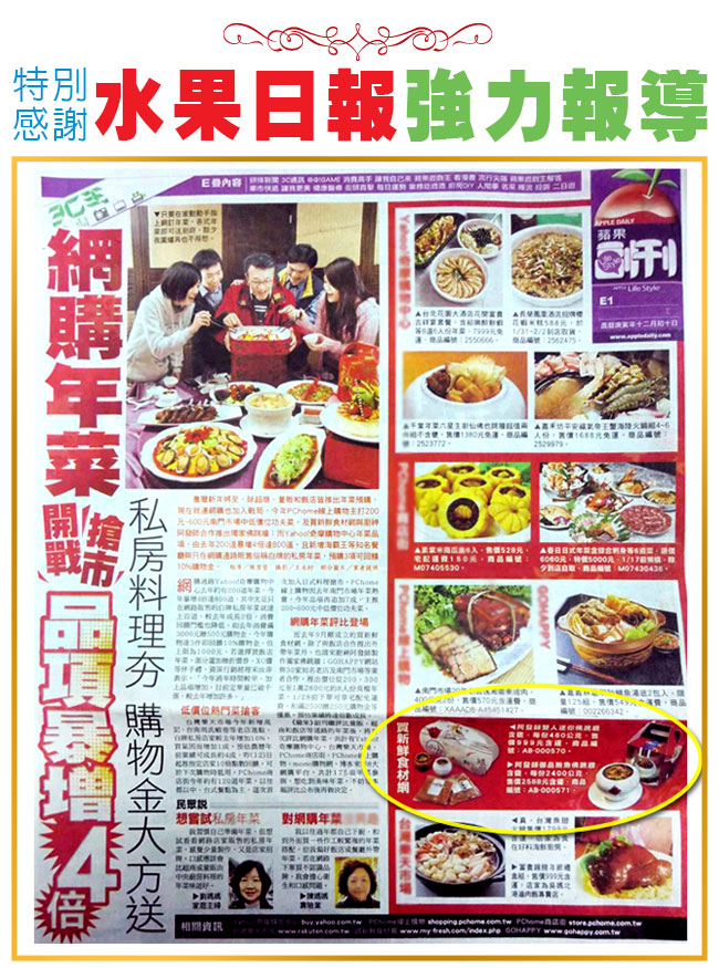 | 【買新鮮】旺旺招財*三星燦戶年菜組" 阿咧~母親節快到了!還沒想到母親節禮物要送什麼的子女們開始緊張了吧!^^ 母親節禮物要送什麼 這還真的是子女媳婦外子們每年都要思考的問題哪! 一定要推薦火鍋鍋子 推薦 【買新鮮】旺旺招財*三星燦戶年菜組" 雖然每年都要思考烤箱烤盤母親節禮物要送什麼這個重要的問題鍋具特賣 但還是很值得的啦!畢竟媽媽懷胎十月忍受著孕期種種不適把我們生下來 (對了對了!孩子還小的老公們也要記得慰勞辛苦的老婆唷!) 且花錢花心思拉拔兒女至少到18歲 母親節禮物一年才送一次 當然要送媽媽最需要的或是兒女們覺得最有價值的囉! 我的話今年是選擇 【買新鮮】旺旺招財*三星燦戶年菜組" 對母親表達我的心意 因為 【買新鮮】旺旺招財*三星燦戶年菜組" 讓我覺得是有價值的禮物 讓我能讓母親開心的禮品 當然囉!除了出門吃頓飯 也別忘了送母親一份特別的禮物唷!