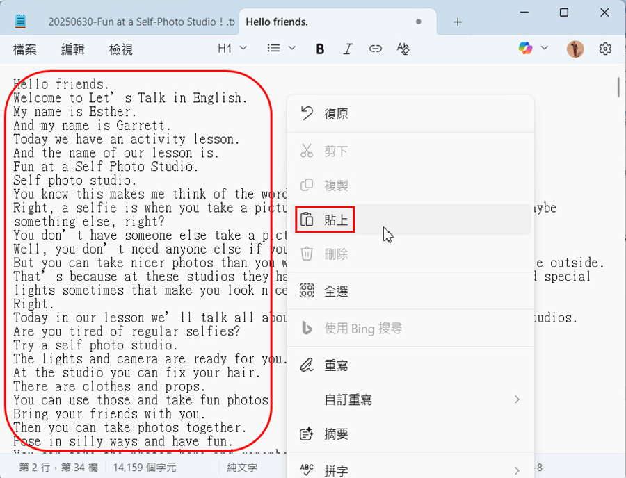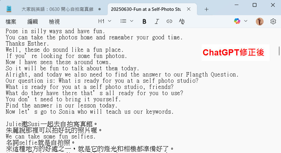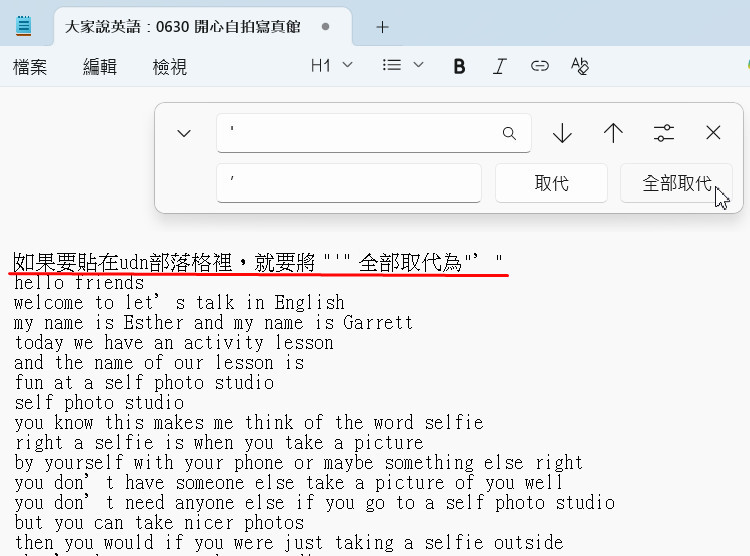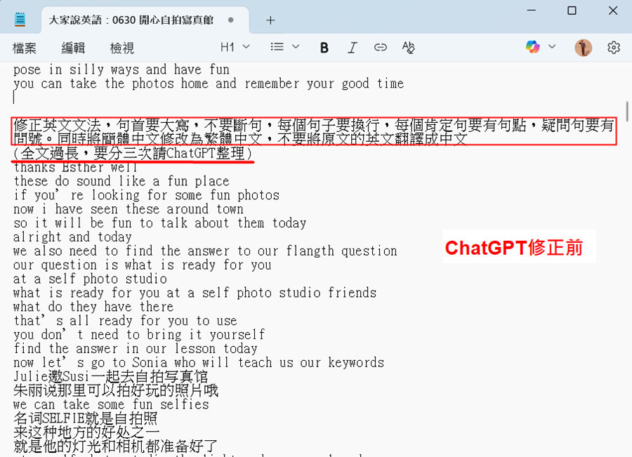 英語教學內容逐字稿製作筆記