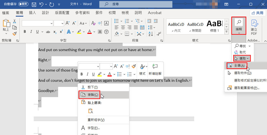 瀏覽器開啟的長篇字幕檔如何"快速全選"?