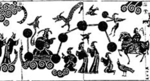下经开头的咸恒二卦,实际上也和北斗息息相关。《咸》卦是“咸池”的简称,而咸池正是斗魁四星的别名。《恒》卦之“恒”,又作“极”,正是北斗所围绕运转的北极天一,也是乘坐在斗魁车舆中的太一天帝的象征。