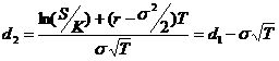 若目前價格為S0,未來T的價格為ST,則Ln(ST)為一常態分配,其平均數與標準差分別為