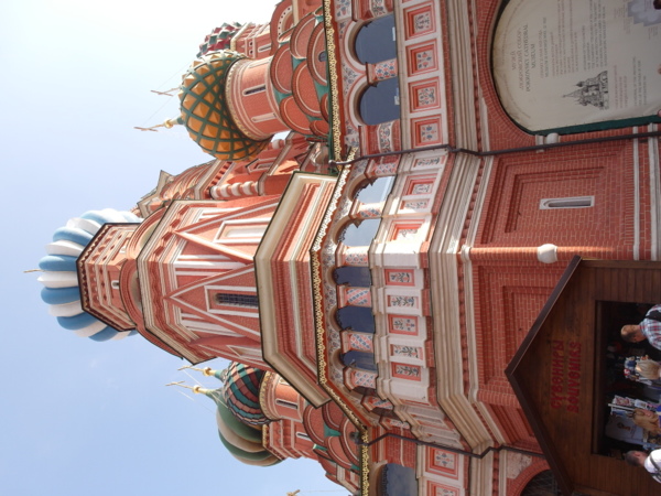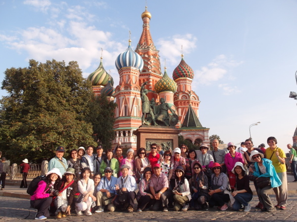 聖瓦西里大教堂,又稱聖巴索大教堂 建於16世紀,第一代沙皇「伊凡四世」為了慶祝打敗喀山汗國所蓋的教堂 總共有9個美麗顏色不一的洋蔥頭 對稱不一、色彩繽紛,標準的俄羅斯式建築 歷經了5個世紀 就算是在19世紀"差點"被拿破崙破壞 (還好老天有眼) 還是屹立不搖的矗立在紅場上 ---------------------------------------------------------------------------- ▼我可愛的團員們 白天帶旅遊團來,通常都會在紅場這邊自(放)由(牛)時(吃)間(草)1~2個小時 所以趁這個時候,就自己來聖瓦西里大教堂裏頭走走囉~ **票價也因日期而不同: 5/15~8/31- 1000 盧布,約台幣500元 語音導覽器也有:俄文、英文以及中文可選擇,租借要500盧布,押金1000盧布 ▼準備進去揭開聖瓦西里大教堂的面紗囉 ▼可以看到天花板上的天使,這是天使等級裡最高的,擁有六對翅膀 ▼跟著導覽路線以及號碼走,雖然跟著走但是真的還是會迷路.....(路痴一枚)