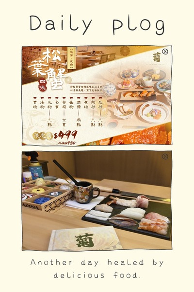 這家新開的日本料理設有上下兩層,地面層以吧檯桌為主,樓上一層設有包房板前料理及KTV影音包廂。現有松葉蟹四味 $499/位(TWD1,888/位)外,更有A5和牛壽喜燒$399/位(TWD1,500/位)和24道海膽宴$688/位(2,599/位)。
