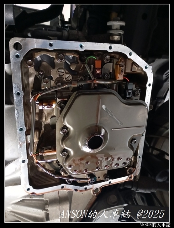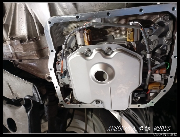 連哥北上來保養維修 , 這次要換掉很黑的變速箱濾網 原廠變速箱油是數萬公里換一次 , 油相當的黑 , 油底殼底部都是黑油泥