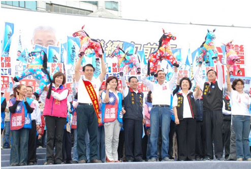 馬吳南區暨陳學聖競選總部成立造勢,以「打拼再四年,台灣更向前」、「繼續向前行,台灣一定贏」為主軸,在兼任南區競選總部主委的桃園縣議會議長邱奕勝帶領下,多位議員與桃園縣各鄉鎮市首長、代表會正副主席、社團領導幹部等地方政壇要角幾乎全到齊,包括國民黨立委朱鳳芝、鄭金玲等中央級民代也上台發言力挺,上演地方大團結場面。 感染到全場上萬名群眾爆滿場面及沸騰的情緒,國民黨榮譽主席吳伯雄與桃園縣長吳志揚父子特別點出對於這次大選的憂心。吳志揚除帶領群眾高喊:「台灣有馬吳,桃園真幸福。」還語重心長地說,「我們真的非常危險,如果沒有出來投票,(我們)一定會輸!」 吳伯雄也憂心忡忡地表示,最近因為選情緊繃,選舉結果可能非常接近,大家都憂心到晚上睡不著覺,他請求大家把這種危機感化為力量,把剩下六十二天的憂心化為動起來的力量,同時,他再次呼籲要把個人的小恩小怨放在一邊,把大局放在中間。 吳伯雄說,他經常受馬總統所託,每年至少都會赴中國大陸訪問一次,他敢對天發誓,馬總統交代他登陸跟中共領導人胡錦濤談的都是台灣的「對等、尊嚴、和平、主權」,絕對沒有寸土讓步,「以台灣為主、對人民有利」,但是,他暗批民進黨主席蔡英文,今天還有人要替馬總統戴帽子,「實在是很要不得」,一年前還有一個黨主席帶頭要反對ecfa,所以他拜託大家動起來,作馬吳的關鍵力量。 陳學聖上台感謝鄉親致辭時指出,他從到桃園縣政府接任文化局長開始,就跟桃園結下不解之緣,這些年來在中壢不斷深耕服務,從國民黨桃園縣黨部主委到成為中壢市的立委候選人,他都以客家女婿的精神,希望能在中壢繼續服務及推動中壢成為更進步、繁榮的城市,而他也有信心能夠做得更好。 馬總統也和陳學聖一樣回憶起個人懷舊中壢的點滴。馬總統說,他一歲零三個月時就跟著家人落腳大園,讀小學二年級時,又跟隨到十一份工作的母親就讀三坑國小(石門國小前身),兩次跟桃園結緣都是半年,桃園是他對台灣最早的記憶,所以他對桃園有很特殊的感情。 馬英九並當場感謝桃園鄉親在上次大選讓他在這裡大贏三十一萬票,他話鋒一轉,強調選一個總統不是要看他選舉期間的表現,要看他過去平常的作為,「我所作所為,就是要讓人民安心」。他呼籲選民,要選一個總統,就要選一個讓人安心的總統,要選一個能在國際上發光發熱、要能達成兩岸和平的總統,不是選一個只會造勢的人,他就是在做能讓台灣發光發熱的事,而且改變已經發生,改革不能中斷。 這場總部成立造勢活動,在支持者致贈馬總統、行政院長吳敦義和國民黨提名的陳學聖、呂玉玲、廖正井、孫大千、楊麗環、陳根德等桃園縣六位立委候選人共八匹花布做的駿馬,象徵馬到成功、高票當選的吉祥物,同時授戰旗、高喊「凍蒜」口號之下,圓滿落幕。