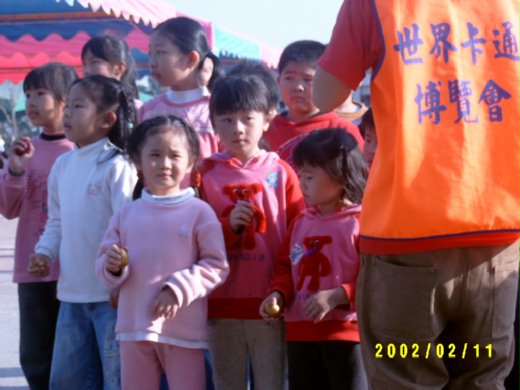 到豐柏步道看猴子後順便在第二涼亭享受冰淇淋和咖啡,最後在停車場旁的溜滑梯讓她們儘興玩個時刻,但是通常意猶未盡的鈞鈞常賴皮不願走,最後搞得哭哭啼啼,所有一天歡樂的氣氛就煙消雲散了。後來我發現先和她們說好再玩幾分鐘,接著是去吃他們愛吃的水餃,然後用手機定好倒數,時間到的叫聲不用我們吆喝,小朋友知道是該離開的時候,賴著不走的情形從不發生,更何況是要去吃愛吃的午餐。 ──小孩子是可以商量的唷! 已經去過一次卡通博覽會,剛好那天又冷又飄雨,我和老公兩人玩興皆無,午餐後不到兩點我們已決議離去,可是一旦涵涵了解這出口一走出去就不能再進去之後,一路啜泣,連停車場的農婦都會心的笑了。可怕的是,一上了車涵涵的啜泣頓時轉為大哭,就這樣一路到家後仍然無法停止。 後來聽一位在日商貝樂思上班的朋友說卡通博覽會有表演巧連智巧虎劇場,我查了一下日期,決定再去一次。由於老公有事所以只在與朋友餐聚後才與我們會合,大部分的時間是我一個人帶著兩個小傢伙,我如臨大敵般計畫一切,買好飲水和食物,對孩子們說:我們要在那裡野餐哦!她們的興奮不言而喻。出發前一天,我已一再又一再的說明:明天要乖乖起床,因為只有媽媽一個人跟著,不可一亂跑,不可以耍賴,不可以......要聽話要......之類的話交待一堆,還是會不安。 結果,一天下來,小朋友玩得開心極了,涵涵上次都不願意和卡通偶合照,這次就大方多了。因為天氣好熱,我也破天荒的在冬天買冰淇淋讓他們分享,我們在巨大的長頸鹿下面蓆地野餐,不僅躲避豔陽還有風吹來,這大概是冬天最熱的一天了。 在巧虎劇場表演前,雖然我們提早來等待也有主辦單位提供的矮凳坐,但是後來的人不但驅前而且都站著,在遊行隊伍來時更是塵土飛揚。大人站著勉強看到舞台,但是小朋友根本看不到,我也不可能一次把兩個小朋友抱著,看來不可能看到什麼,我們退到舞台側面遠遠的看表演。即使如此,小傢伙們不懂得這其實很掃興,只能在遠遠的側面看表演,一點抱怨也沒有。 涵涵在午後很開心的告訴我:媽媽,我們都好乖唷!我們兜留的時間比預期久。再一次體驗朱宗慶打擊樂的歡樂,小朋友又看到上次的阿德哥哥開心得很。在帶動的哥哥要小朋友集合時,鈞鈞不了解事態何如就往前走去,反而是涵涵羞赧不敢前去,阿坤哥哥前來連哄帶騙地讓她加入。小朋友們跟著遊戲與音樂體驗節奏,之後每個人都拿到一張獎勵貼紙。阿坤哥哥對我說涵涵表現得很好,有這方面的細胞,是可以栽培的料。我把阿坤哥哥的話解釋給涵涵聽,我想她的自信應該會增加。 因為聽廣播說晚上有放天燈與煙火的節目,而且七點前就結束,我打算留到放完煙火後再走,老公面有難色,但還是打電話回家報告不回家吃晚餐。即使只是坐在一旁看別人放天燈,還是讓人覺得浪漫。因為沒有看過平溪的天燈,所以這是我第一次看到好多的天燈一起昇天,小朋友當然是第一次。這也是鈞鈞第一次看煙火。 我們踏著疲憊的腳步離開,我想小朋友們這一天真正很開心,她們的乖巧也是出我意外。老公提議吃鍋貼,小朋友更是樂不可支,擔心她們在車上睡著根本多餘。 ──有時候,我們會認為不好玩的地方,小朋友還是可以玩得很開心。 |