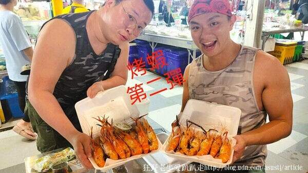 依舊派出兩位「大使」去各攤採買 他們上次來時PO好多美食照 讓我們上鉤 今天兩位不停來回奔忙 買回來的美食 四位「長老」食指大動 第二盤再回來時 第一盤已見底