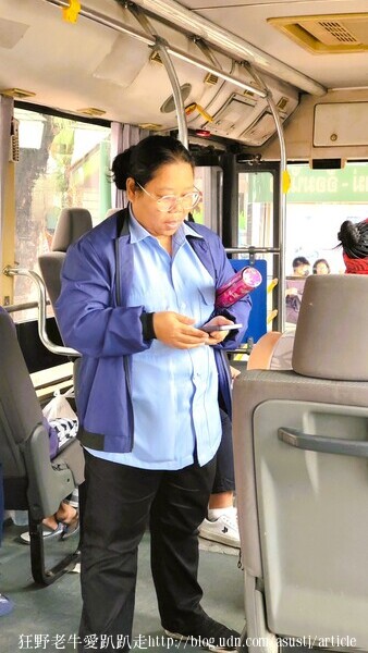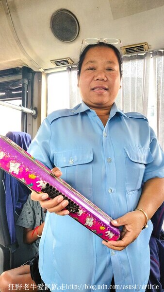 ▲▼公車小姐的竹筒式票機 引起我的注意 要求拍照 她很大方入鏡 還有很巧的事 我們吃飽喝足要回市區 又搭上她的公車