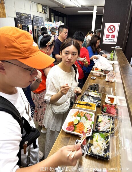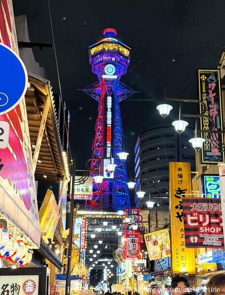 大阪自由行─D4 今天逛木津市場 兒媳帶我們吃海鮮 逛了一圈 新鮮海產、鮮果等美食很多 原本想買多一點 晚上回民宿煮食 但是還要去通天閣 不便帶著走 所以僅買一些 來到休息處提供的立食桌當場嘗鮮 這區位置很搶手ㄧ下子就客滿 四個大人吃得津津有味 小朋友選擇一旁看扭蛋機較有趣 通天閣 顧名思義就是直通天空的高大建築 現在的通天閣是第二代 1956年完成的 高度百米 含避雷針有103公尺 最上面有日立的廣告 ▲▼登高遠眺 陰陰天空下極目四望 遠處建物色彩也灰了一點 山巒還很明顯 近處的建築與車子甚是清晰 ▲▼這個有挑戰性 腳下玻璃直接透視地面 我走到那兒沒問題 但是一俯視 真的腳底麻麻的 ▲孫子也走過去 很棒! ▲▼室內也有固力果跑跑 拍照不用人擠人 ▲▼回到地面 人潮漸多 但兩旁商家未全開 ▲▼感覺光采是屬於夜生活的 ▼來到京乃百年洋食吃午餐 客人很多 排了好久 下午回民宿休息 待華燈初上再去夜拍通天閣 兒媳去補貨 阿奶與孫子顧家 我獨自從民宿走過去 不遠 僅13分鐘 果然燈火通明之後璀璨亮麗更有一番美感 觀光人潮湧現 找個好位置拍照 得等很久 ▲▼明亮的招牌很吸睛 回程再次穿過鐵道下的通道 臨時攤販也開張營業了 又是走走吃喝 揮過汗水再補回來 一夜好眠
