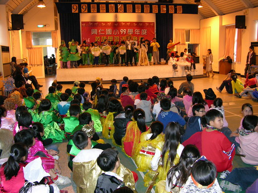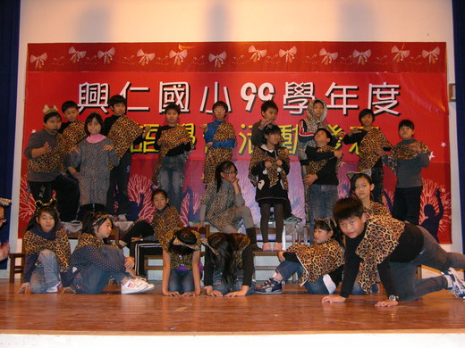 桃園縣中壢市興仁國小於12月24日下午舉行5年級英語歌舞曲成果發表會,7個班級學生結合平時英語學習內容,穿著戲服表演「美女與野獸、貓、阿拉丁」等經典名劇,訓練學生說讀英語的能力與上台表達膽識。 5年6班班長葉柏宏說,「我扮演野獸,在表演前勤練英語,增強我的英語表達能力,讓自己的英文進步很多」。 英文老師宋柔曄表示,7個班學生,每人都上台以英語表演歌唱節目,每班學生連續1個月的演練,讓他們感覺很辛苦,但英語卻進步神速。 興仁國小校長謝榮宗表示,學校積極爭取「英語教學成為特色學校」已3年,校內英語學習環境、設備充足,包括英語定時鐘、英語數位電視台、英語數位視聽教室、多媒體英語教學軟體學習教室及各種英語環境佈置等,讓學生在校營造一個「聽說讀寫」英語的學習環境。 |