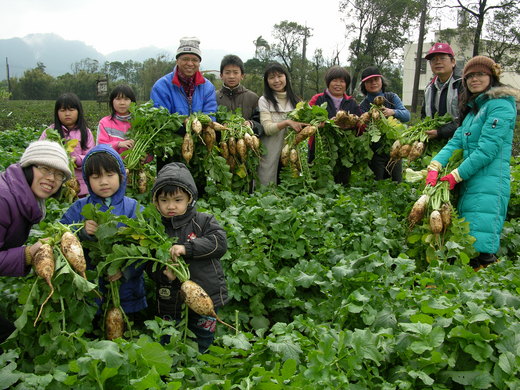 桃園縣龍潭鄉龍源國小師生1月24日在學校菜園高唱「嘿呦! 囉呦的拔蘿蔔」等童歌,讓小朋友親自下田拔蘿蔔,從播種、施肥、澆水至收成,連續3個月記錄蘿蔔的生長,體認農民種菜辛勞與收穫的喜悅 龍潭鄉龍源國小去年11月初,5、6年級學生在校長葉煥漢、訓導主任羅玫玲等人率隊下,在學校菜園種下白蘿蔔、紅蘿蔔和刈菜等蔬菜種籽,學生們每天澆水並施肥,同時記錄蔬菜的最新成長情況。 白蘿蔔長的特別快,僅3個月時間已見成熟,昨天雖然放寒假,但利用天氣無雨之際,邀約5、6年級學生返校,一起參與校園拔蘿蔔收成。大的將製作蘿蔔糕,小的切條後曬乾製成蘿蔔乾,在學生返校日分送小朋友品嘗自己辛苦栽種的果實,體會農民耕作辛勞與豐收的喜悅。 |