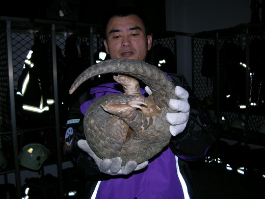 一隻重約4公斤的巨大穿山甲3月3日意外出現在桃園縣中壢市一處菜園,消防隊員半信半疑的趕到現場,驚訝捕獲這隻保育類動物,3月4日轉交桃園縣政府野放,重返無人的山林生活。 中壢市陳姓婦人向消防局報案,在中壢市育英路住家,聽到菜園有雜音,誤認有人偷菜,進入菜園後驚訝發現竟是一隻穿山甲,正在破壞菜園農作物。 興國消防隊員蘇于翔等人據報趕抵,前後歷經1小時,終於成功捕獲這隻迷途的穿山甲! 由於穿山甲屬於保育類野生動物,縣政府人員到場處理,先將這隻穿山甲帶到獸醫院檢測,確認沒生病可自行生活後,隨即帶到復興鄉無人之處野放,讓穿山甲遠離都市與人類,在山林中快樂生活。 |